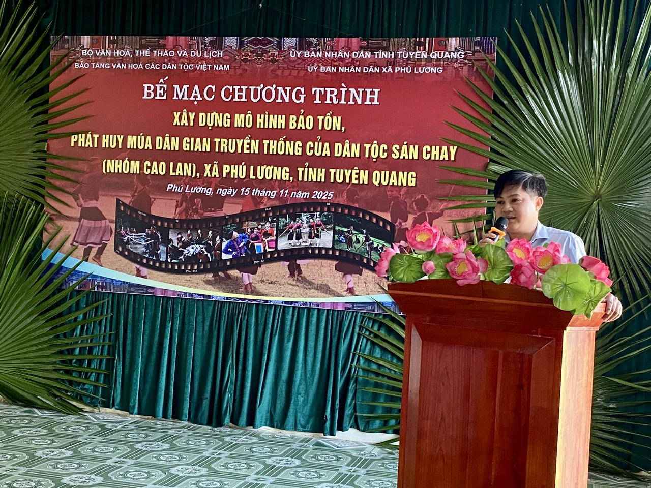 Ngày 15/11/2025, tại Hội trường UBND xã Phú Lương, chương trình “Xây dựng mô hình bảo tồn, phát huy múa dân gian truyền thống của dân tộc Sán Chay (nhóm Cao Lan)” đã bế mạc sau thời gian triển khai nghiêm túc, hiệu quả.