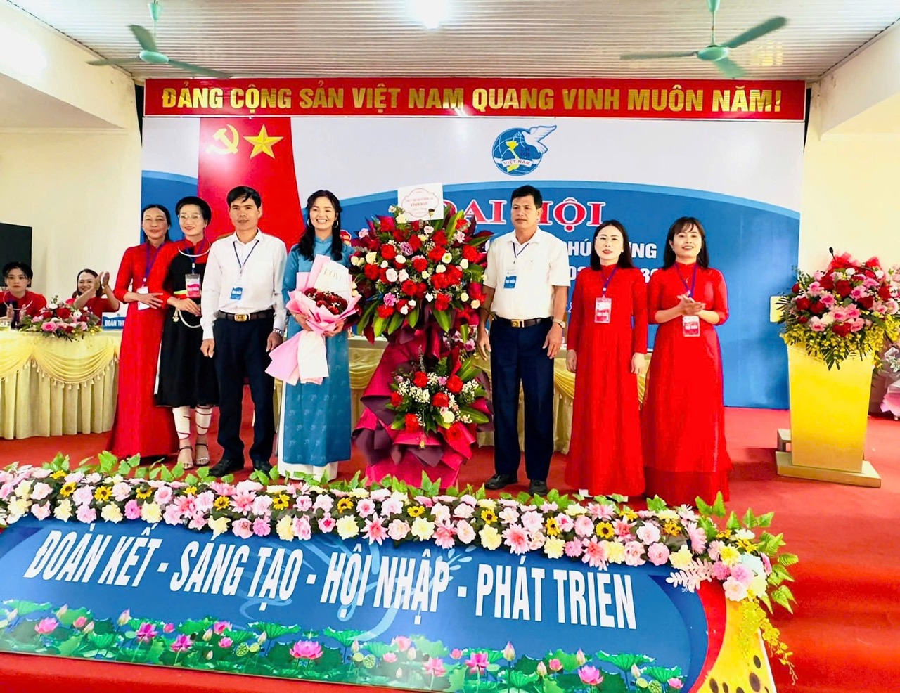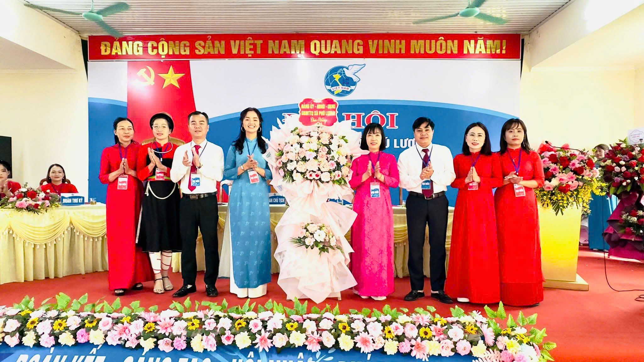 Lãnh đạo Đảng ủy, HĐND, UBND, UB.MTTQ xã tặng hoa Đại hội
