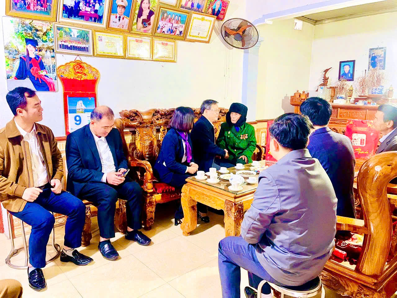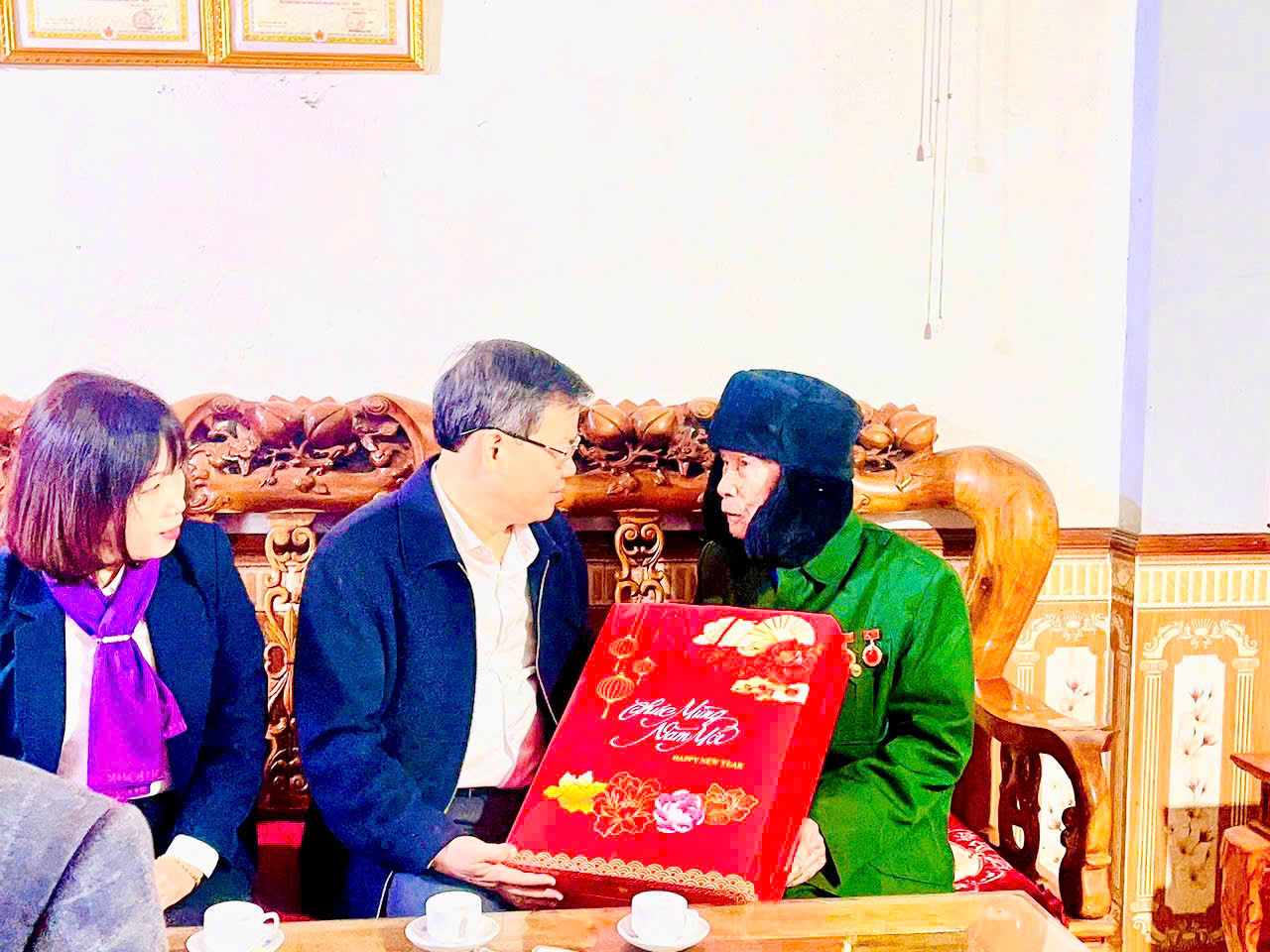 Sau nội dung thăm, tặng quà, Đồng chí Nguyễn Văn Sơn cùng đoàn lãnh đạo xã, trực tiếp chúc thọ Cụ Hoàng Văn Đăng, thôn Gia Cát, 102 tuổi; Cụ Lâm Thị Khuân, thôn Cầu Trâm, 100 tuổi. Tại gia đình đồng chí đã ân cần thăm hỏi sức khỏe, đời sống và trao quà Tết cho các cụ.