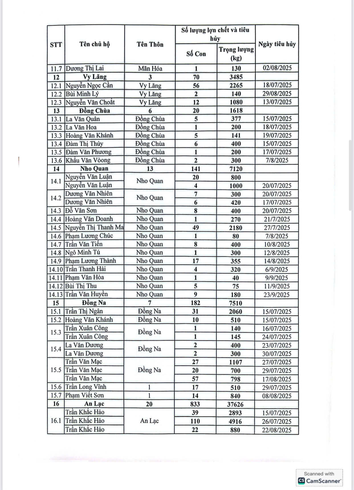 Thời gian niêm yết: 5 ngày, kể từ ngày 27/02/2026 đến hết ngày 05/3/2026 UBND xã sẽ niêm yết công khai tại Nhà văn hóa của 50 thôn có các hộ gia đình bị thiệt hại do lợn mắc bệnh Dịch tả lợn Châu phi bị tiêu hủy.