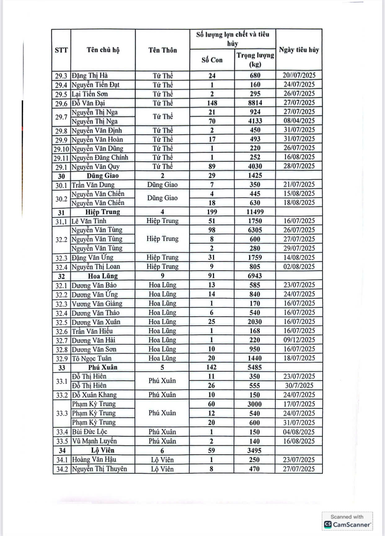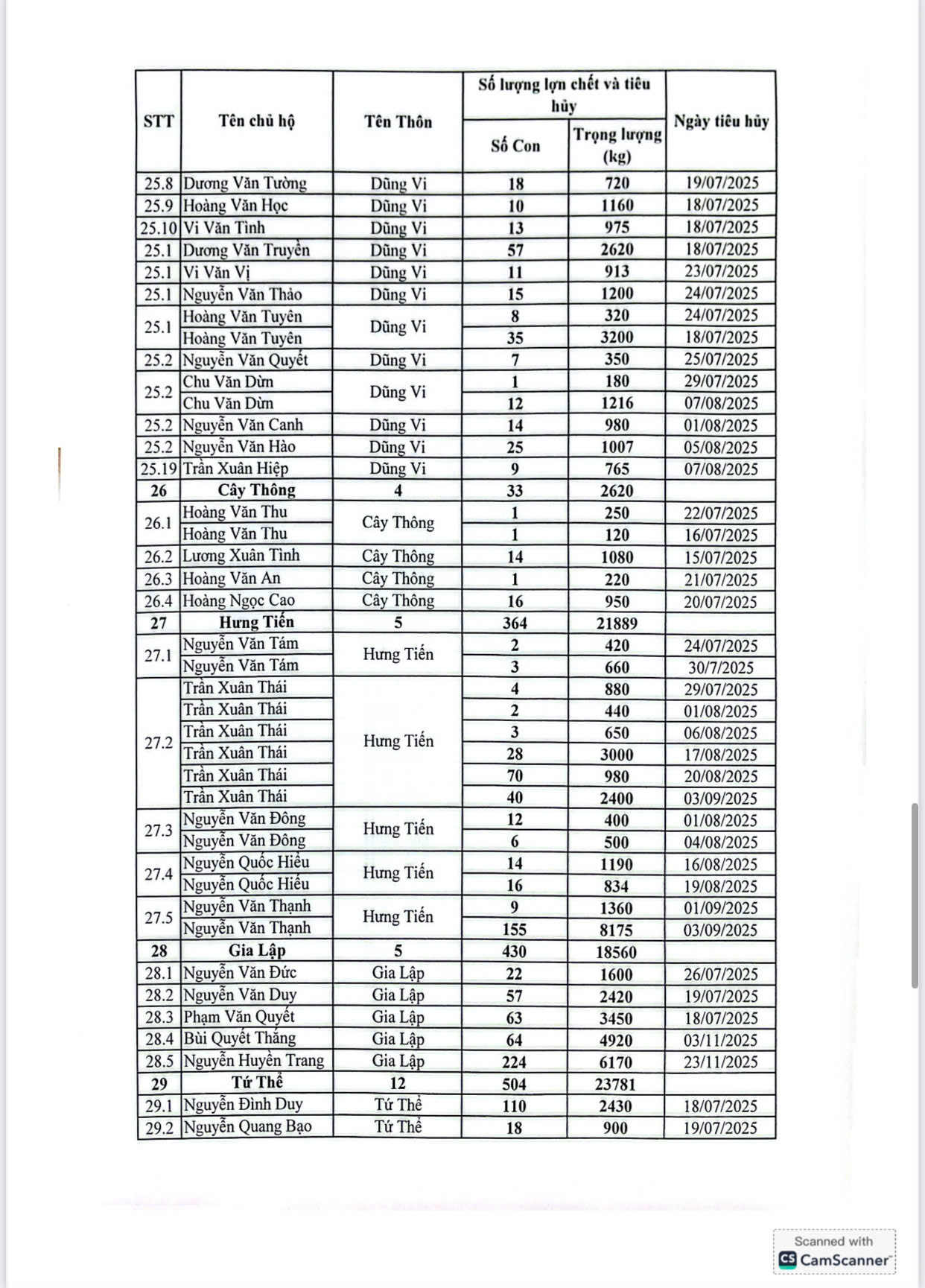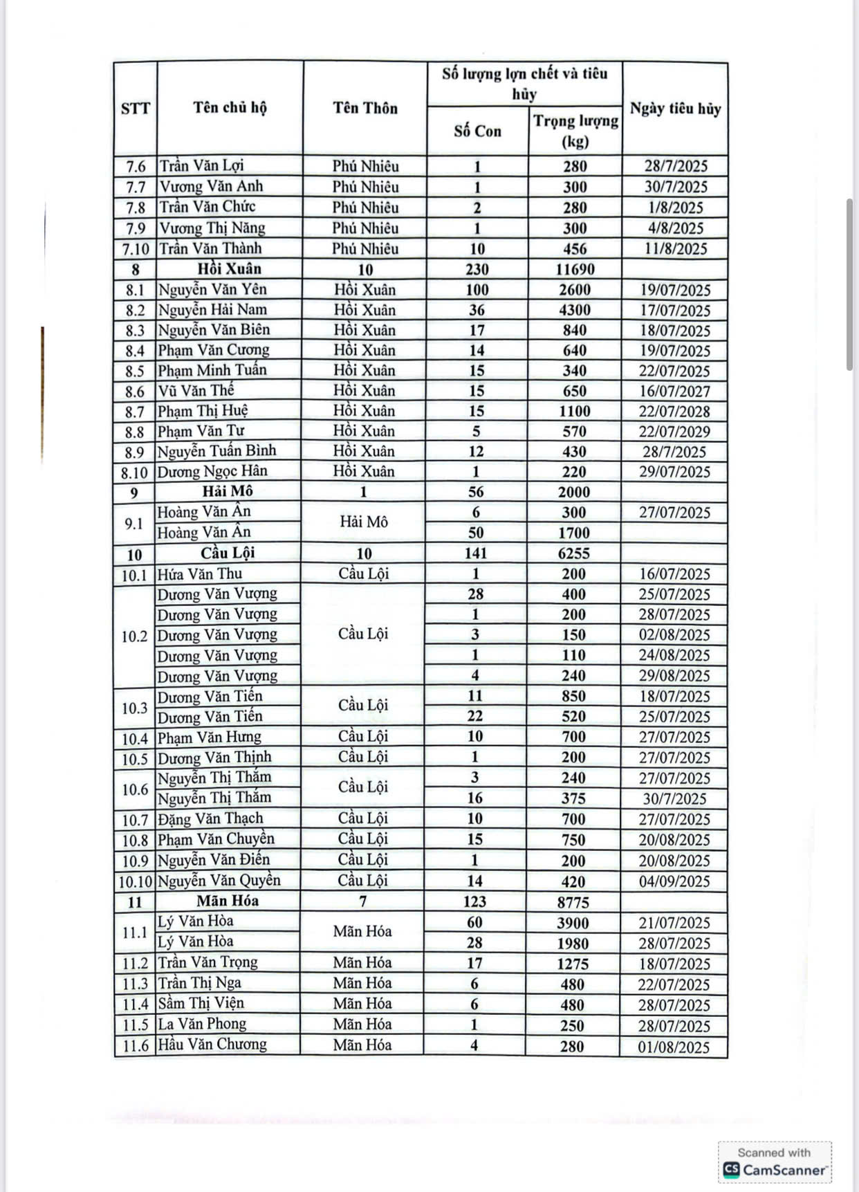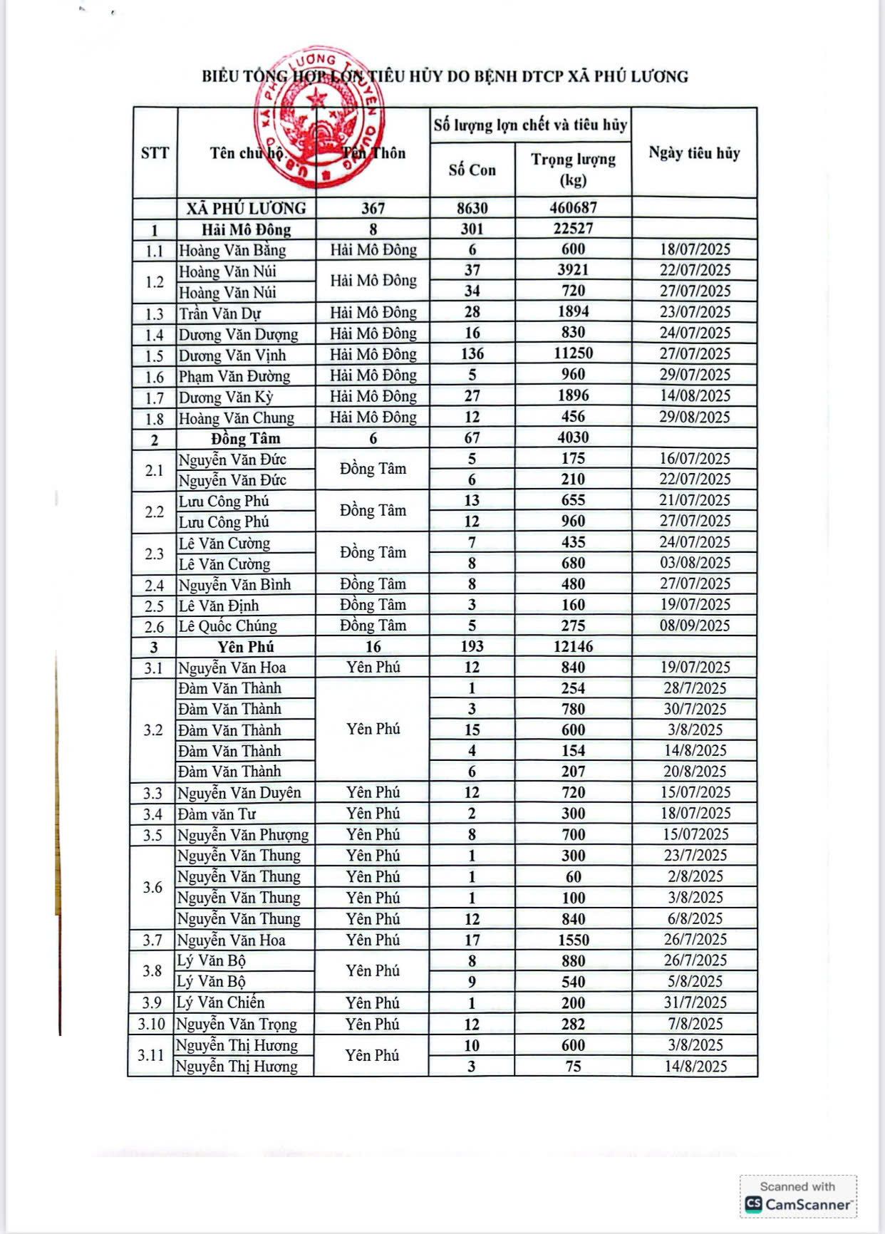Trong thời gian qua, trước diễn biến phức tạp của dịch bệnh, UBND xã đã khẩn trương phối hợp với cơ quan chuyên môn tổ chức kiểm tra, xác minh, lập biên bản, thống kê đầy đủ số lượng, trọng lượng lợn buộc phải tiêu hủy theo đúng quy trình kỹ thuật; đồng thời hoàn thiện hồ sơ đề nghị cấp trên thẩm định, phê duyệt kinh phí hỗ trợ theo quy định hiện hành.