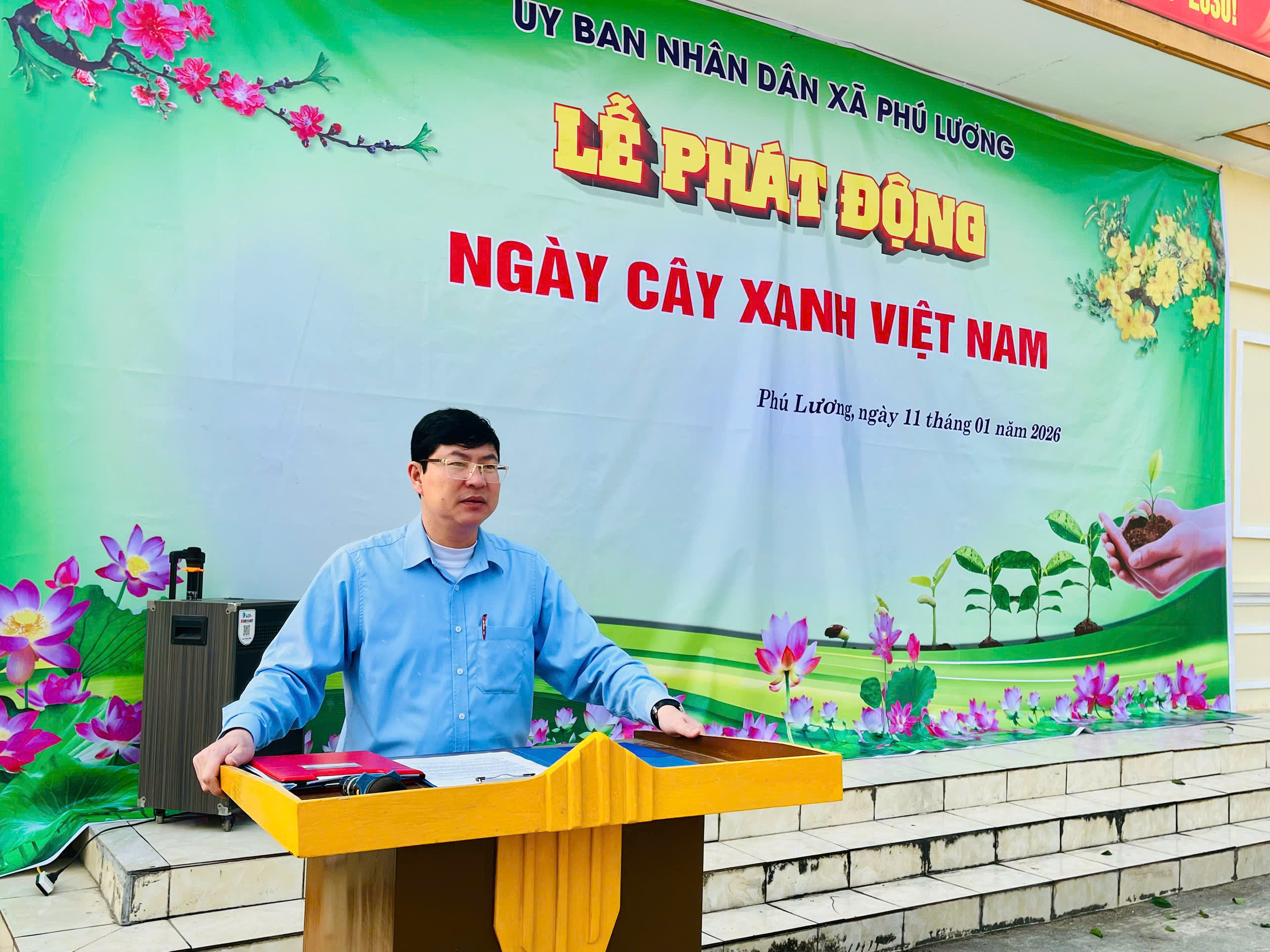 Tại buổi lễ, đồng chí Khổng Mạnh Tường – Ủy viên Ban Thường vụ Đảng ủy, Phó Chủ tịch Ủy ban nhân dân xã Phú Lương đã phát biểu phát động, kêu gọi toàn thể cán bộ, đảng viên và Nhân dân tích cực hưởng ứng phong trào trồng cây xanh, góp phần bảo vệ môi trường, ứng phó với biến đổi khí hậu, xây dựng cảnh quan nông thôn ngày càng xanh – sạch – đẹp.