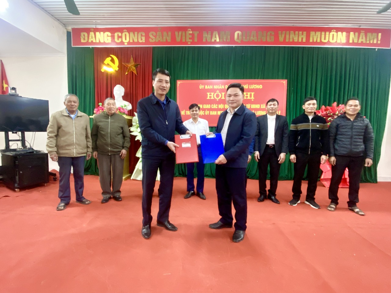 Lãnh đạo UBND xã bàn giao các Hội cho lãnh đạo Ub. MTTQ xã